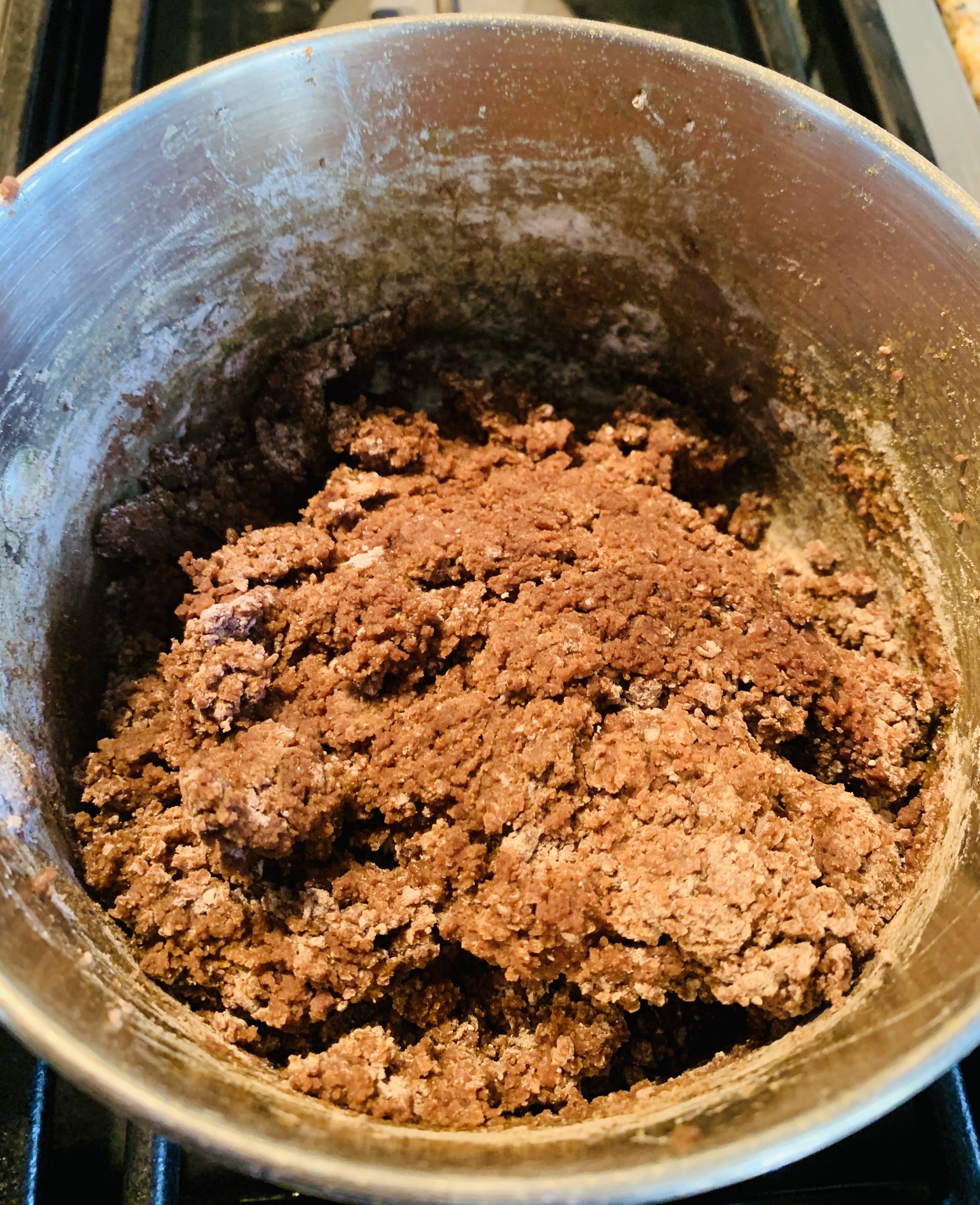 - To make the dough – Take a heavy bottomed pan, add 2 cups of water, salt , turmeric powder and oil. When the water starts boiling, add the ragi flour. Keep the heat on low for about 30 to 40 seconds and mix the contents with a ladle. Switch off the flame. The ragi flour might look stiff and crumbled at this stage.