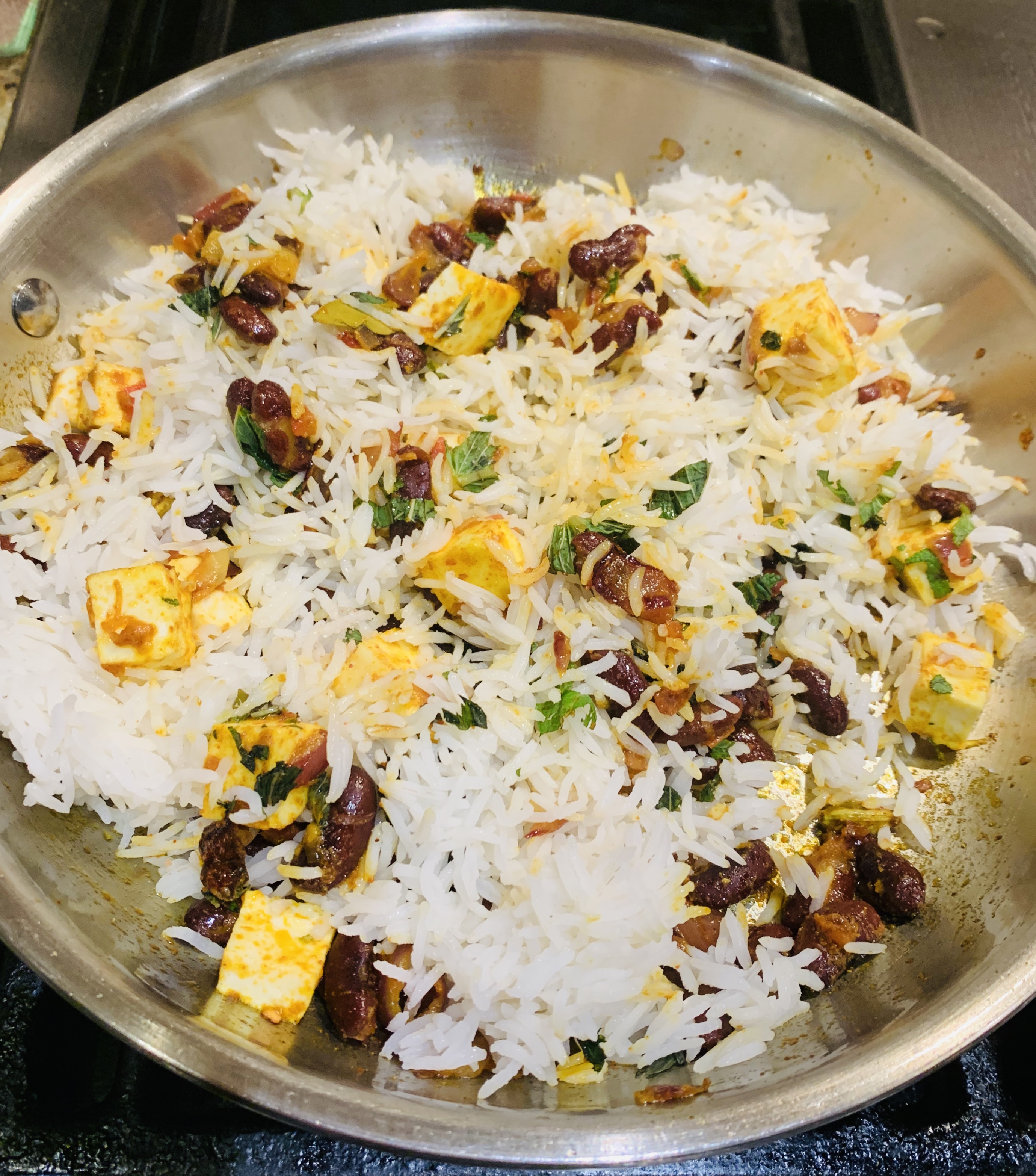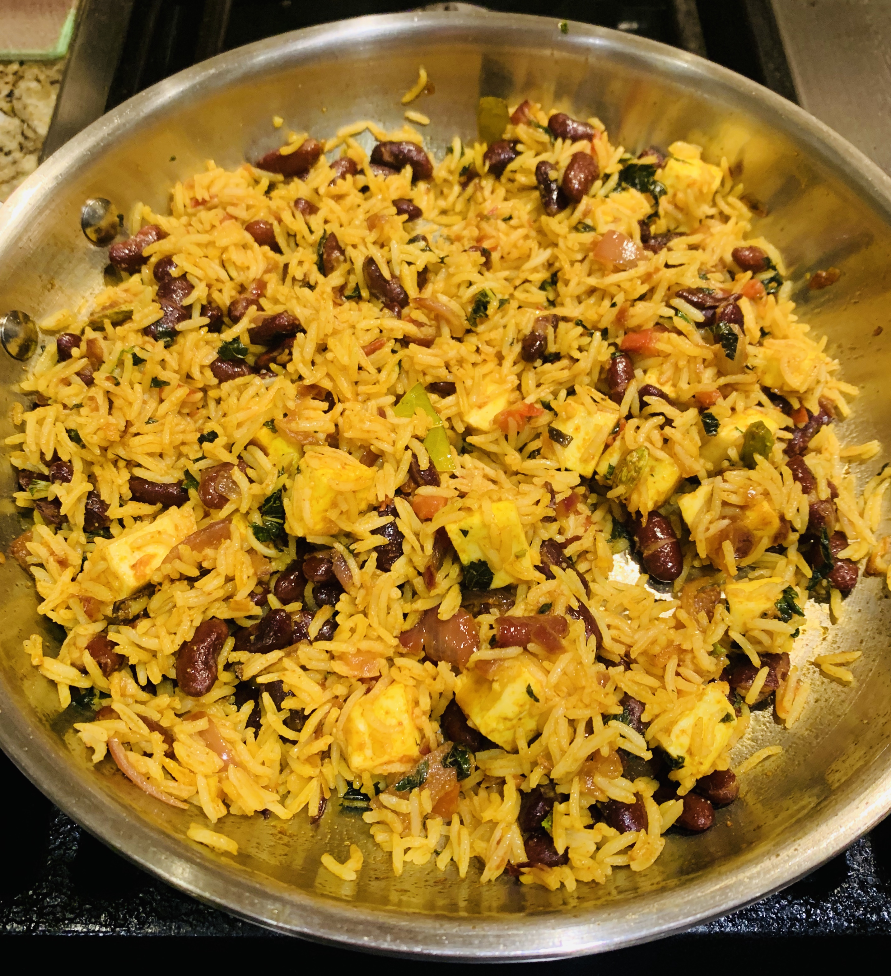 Rajma Paneer Pulav – a nutritious, protein packed wholesome meal. This rajma pulav is prepared by cooking the red kidney beans and basmati rice along with onion, tomato and few spices. This flavourful rajma pulav is perfect for lunch boxes and can be served with raita.
