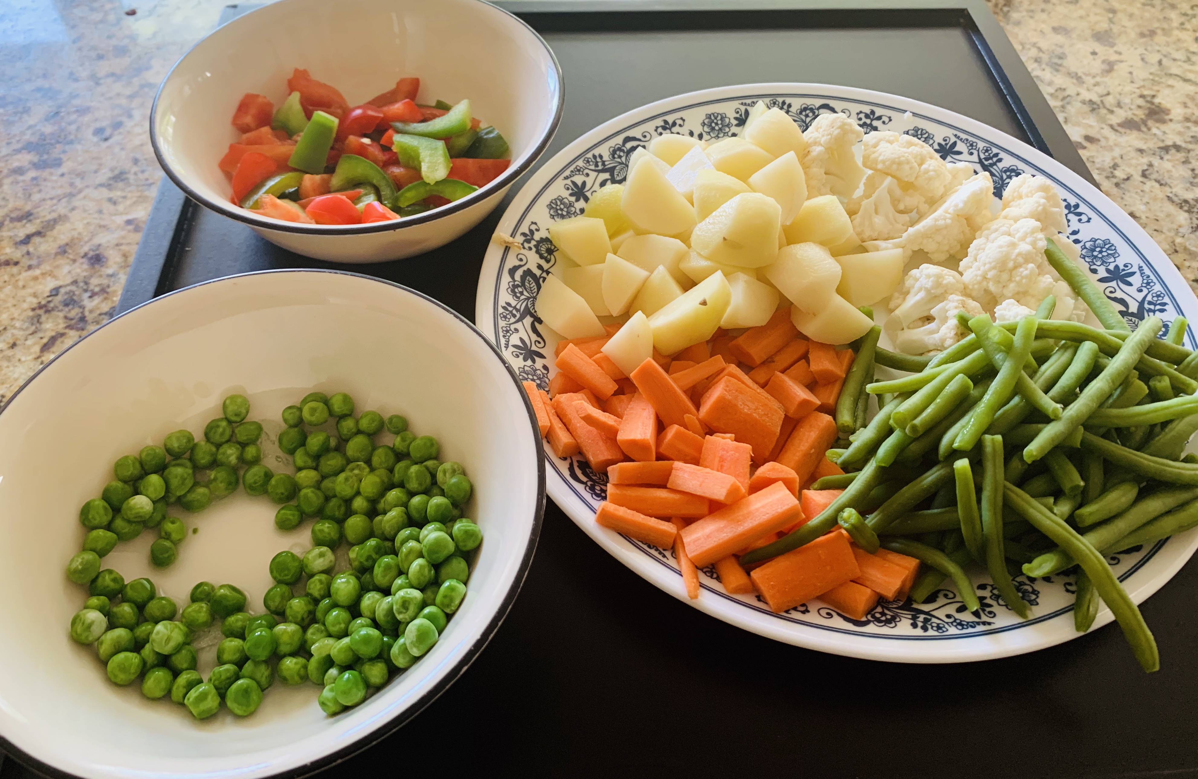 | Mixed vegetables (beans, carrot, potato, cauliflower, peas, bell pepper) | 1/4 th cup each |