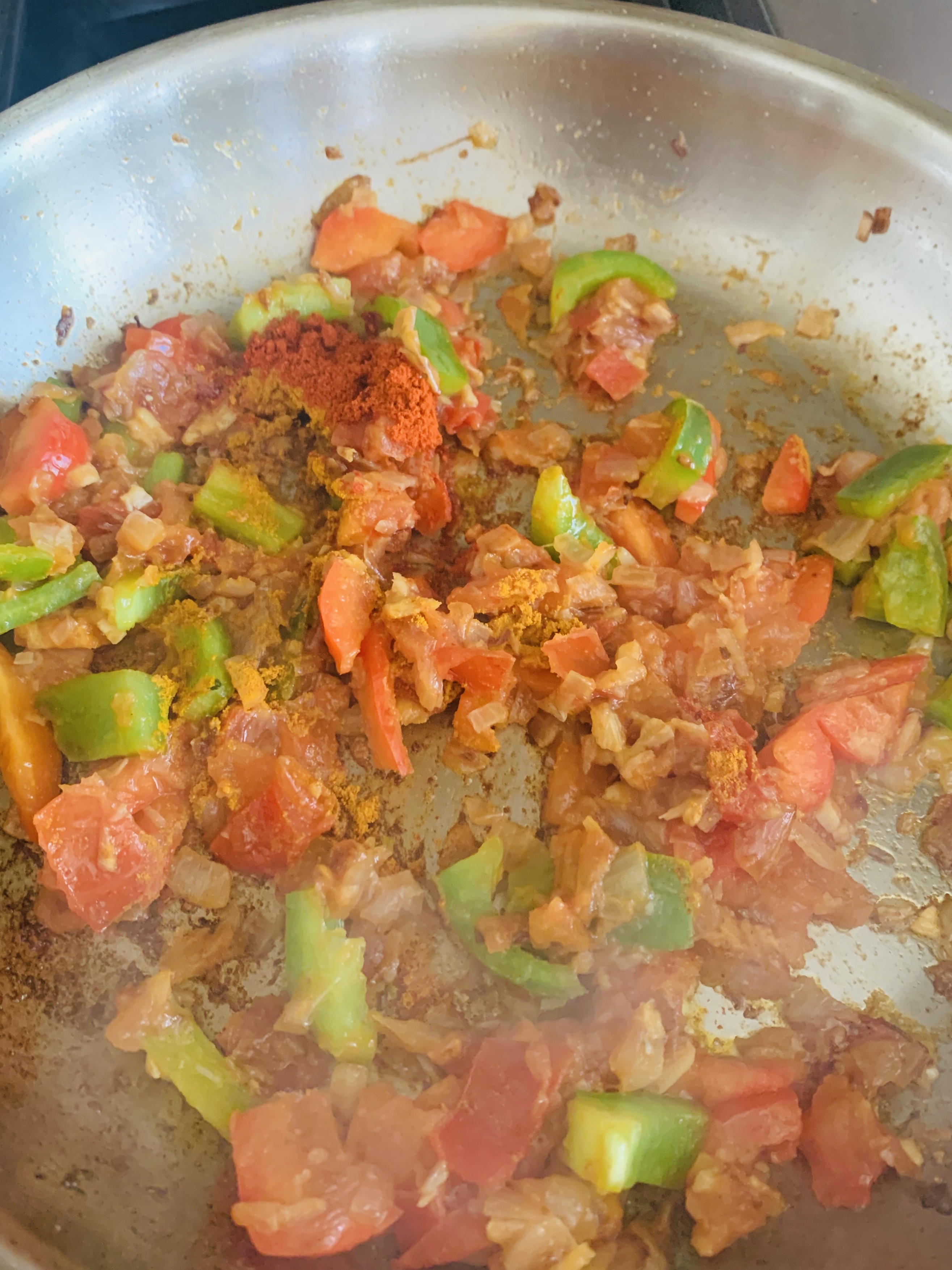 - Add the chopped bell peppers and cook for 1 to 2 minutes until the bell peppers are soft. You can skip this step if you do not prefer to add bell peppers.