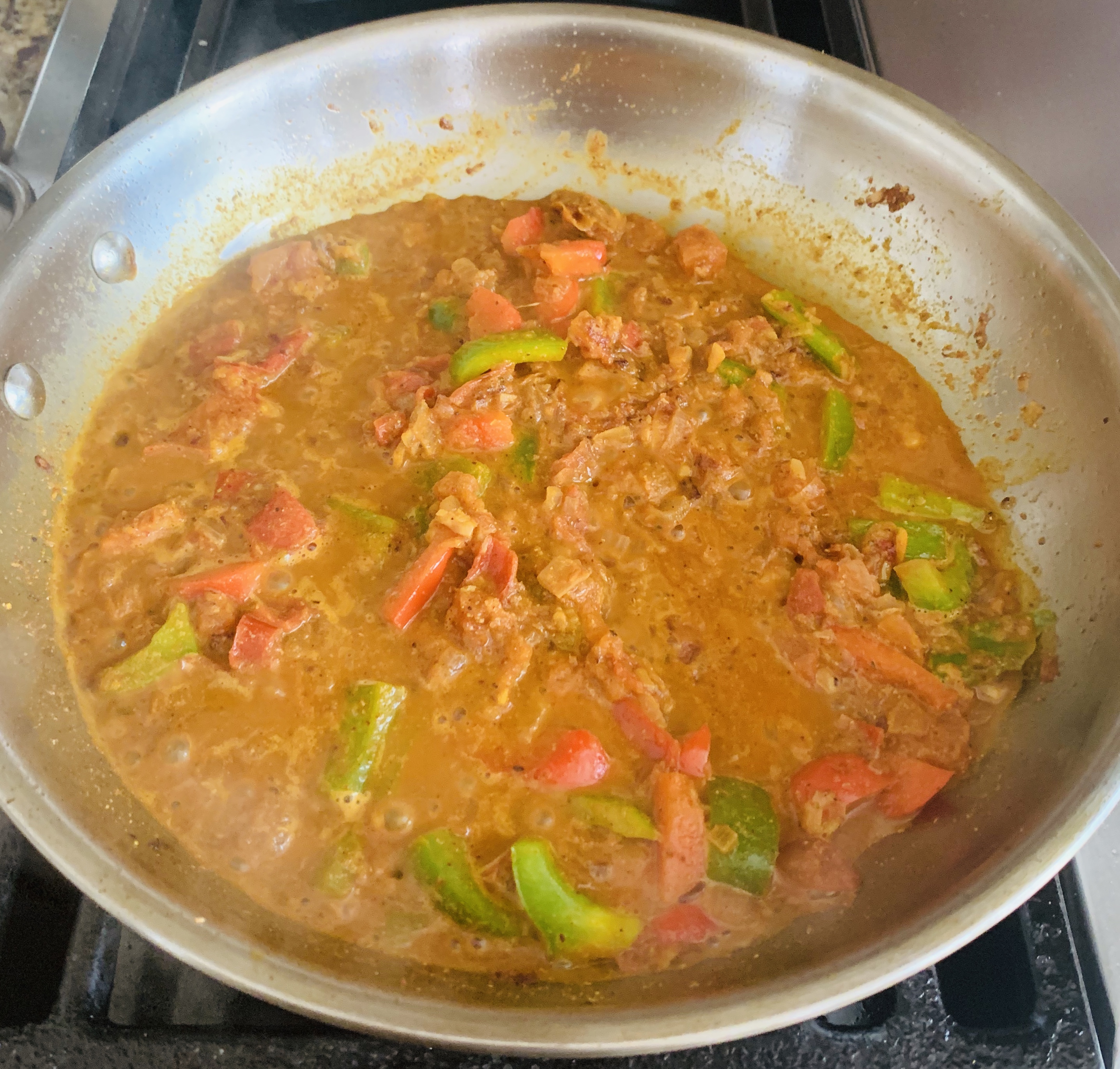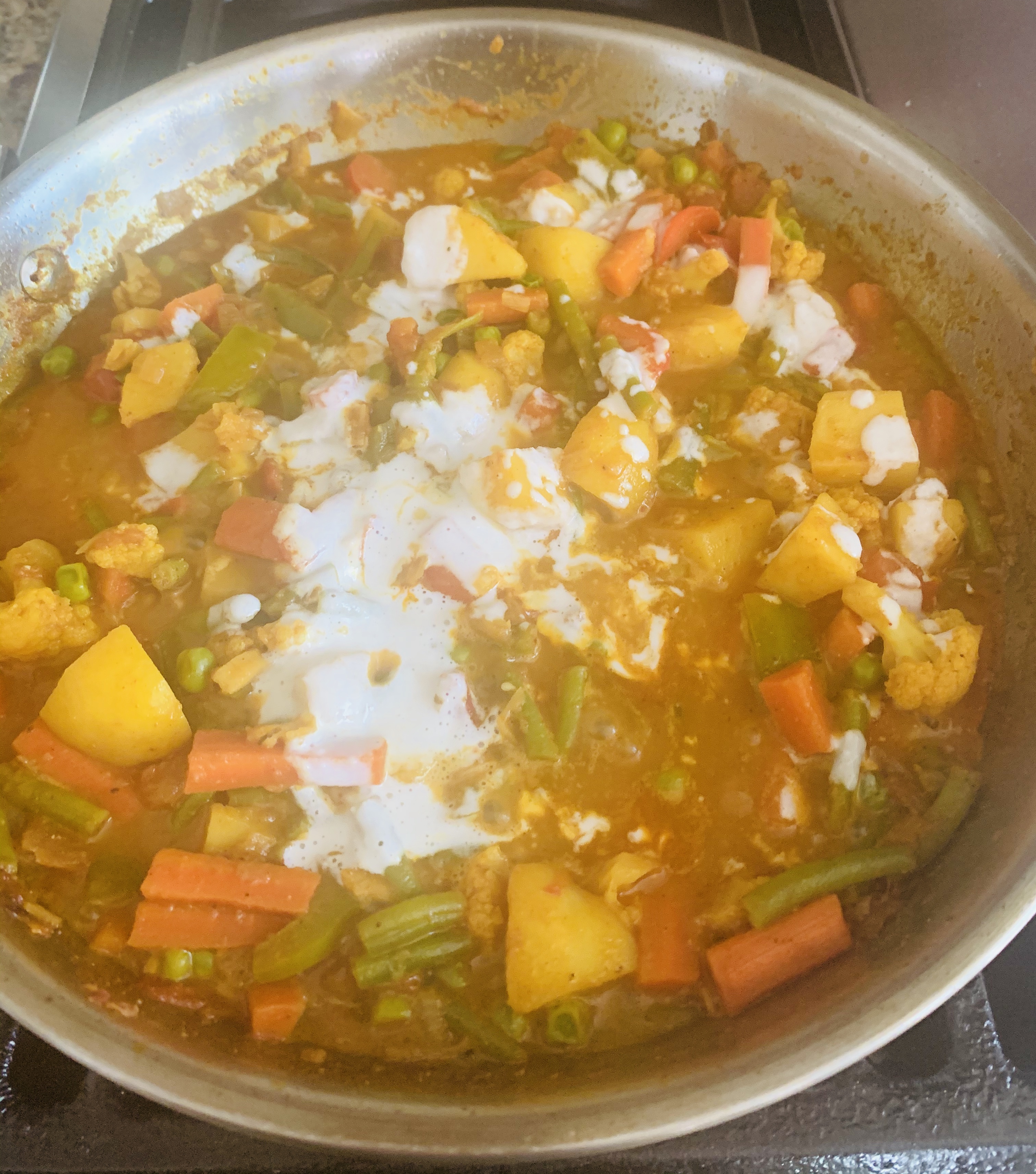 - Simmer the curry for 3 to 5 minutes until the veggies and masala are blended well.