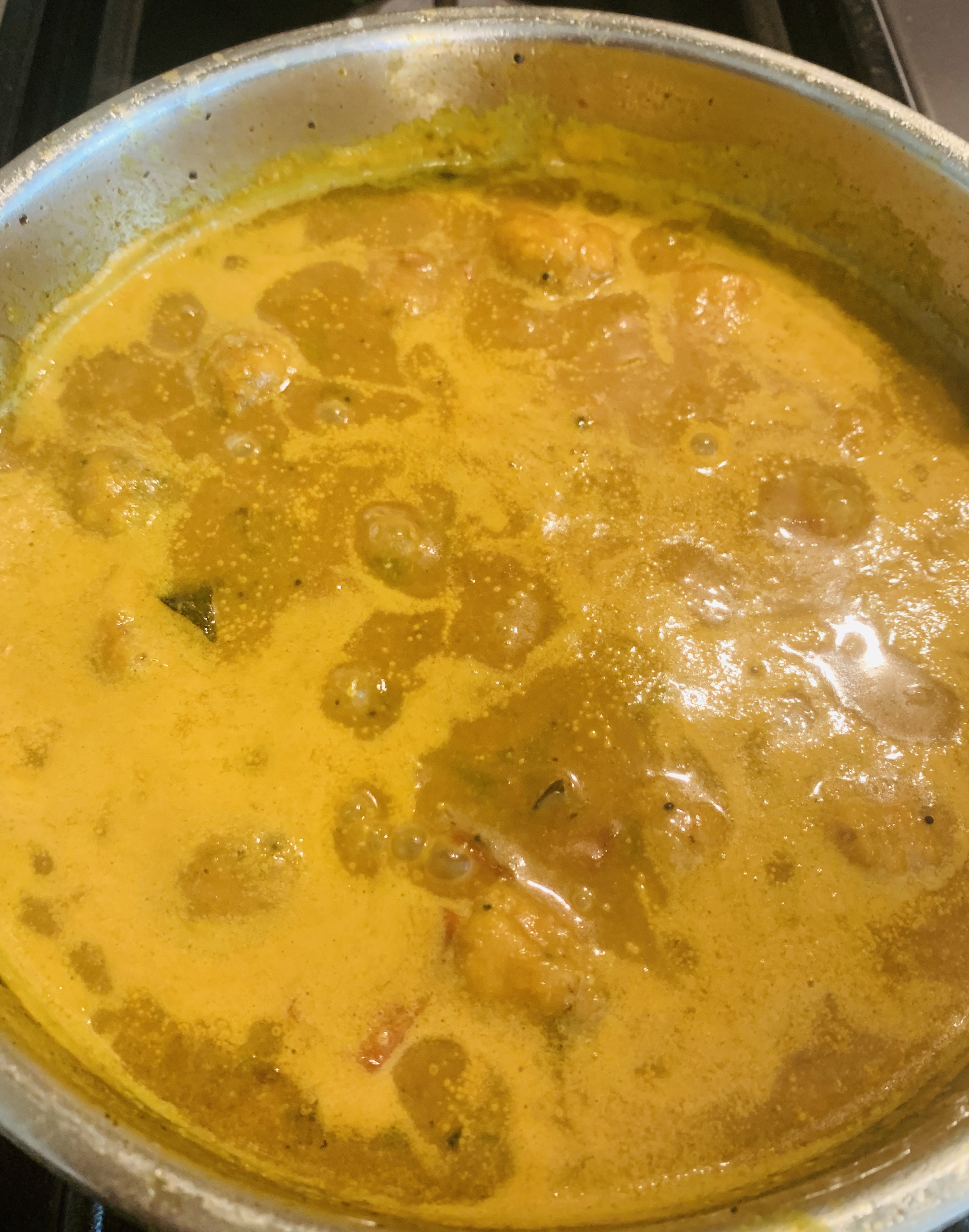 - Let the kuzhambu / gravy simmer for about 10 minutes.