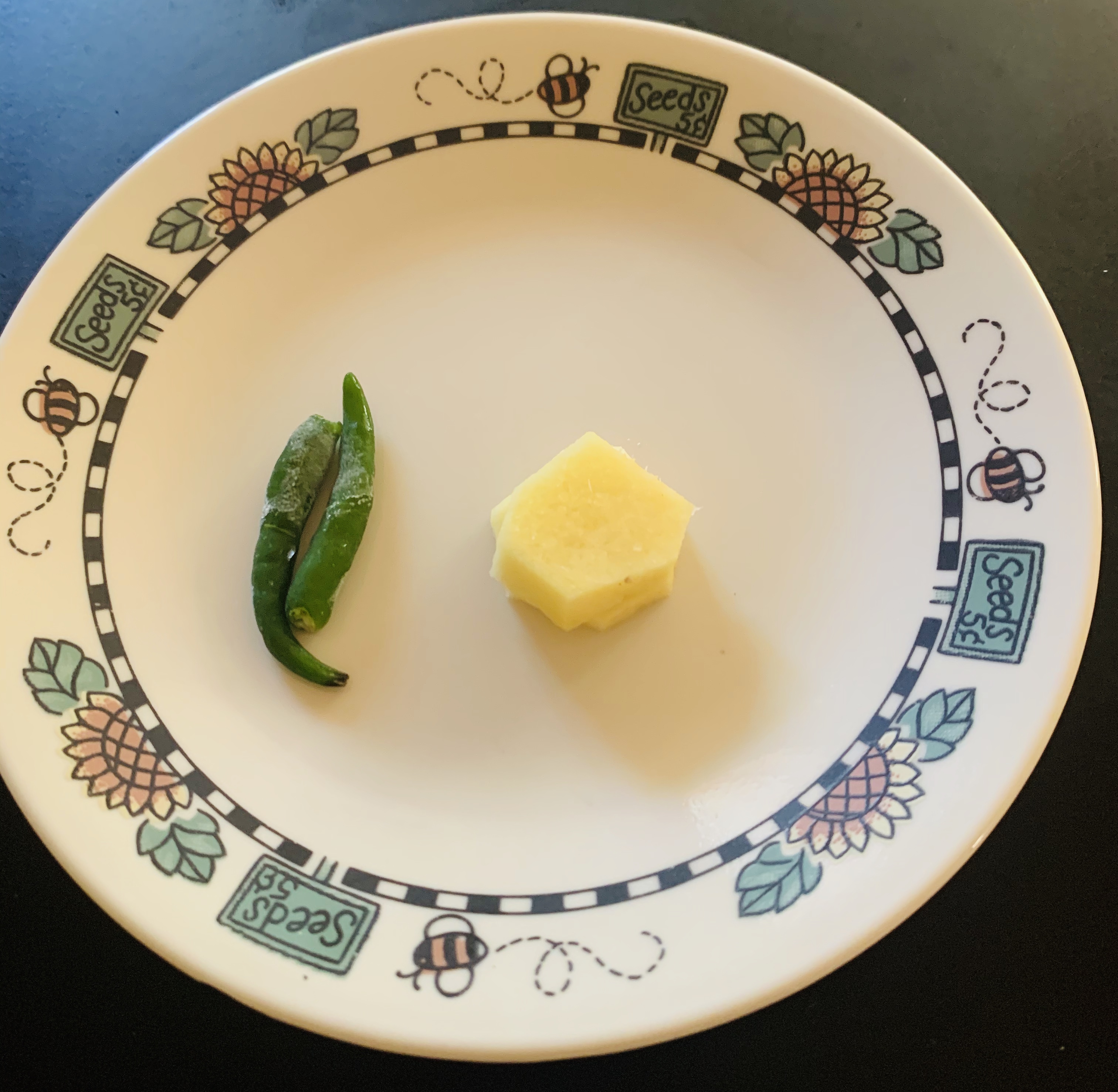 - Preparing the batter – Grind 2 green chillies and 1 1/2 inch ginger to a smooth paste. You can add little water while grinding if you prefer.