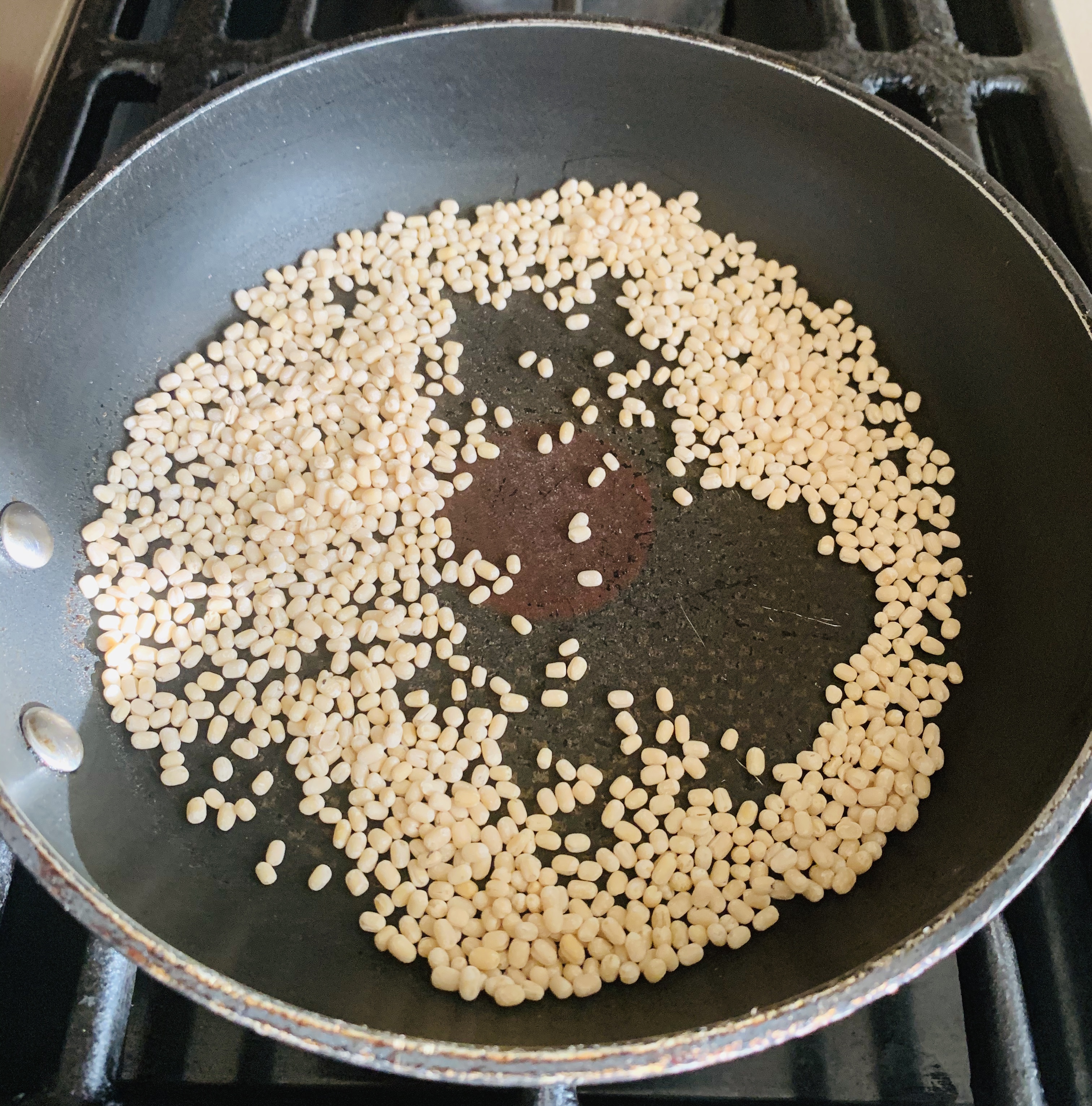 - To prepare Urad dhal flour: Take about 1/4 th cup of urad dhal (white) and dry roast in a pan in low heat until it is warm enough. Do not allow the urad dhal to change colour. Roast it until the urad dhal is warm enough to touch. Cool and grind it to a fine powder. Sieve the urad dhal flour to get rid of small lumps and discard the residue. (You can also use store bought urad dhal flour).