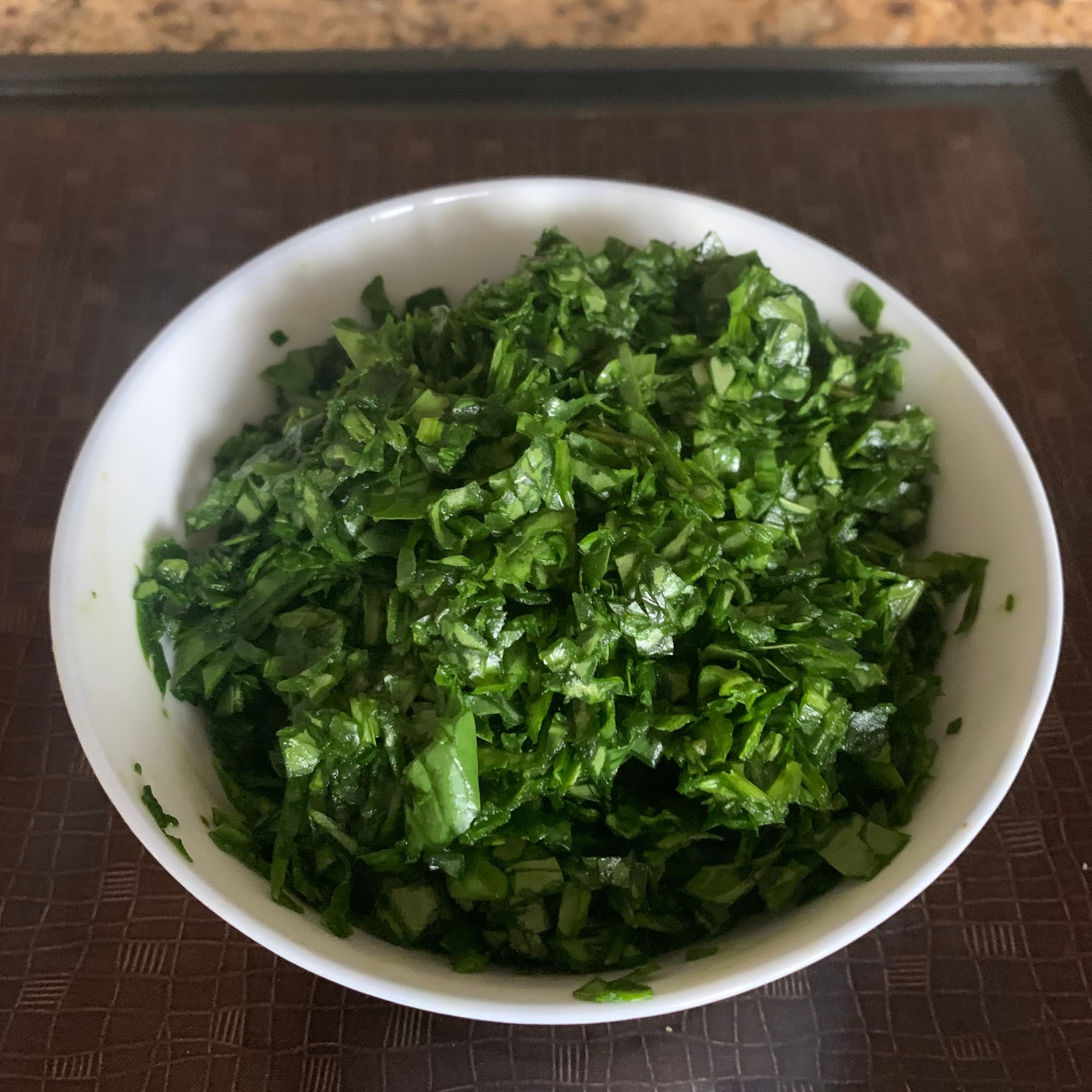 - Wash the spinach leaves thoroughly and discard the bottom portion. Finely chop the spinach leaves and keep it aside. Finely chop the onion.