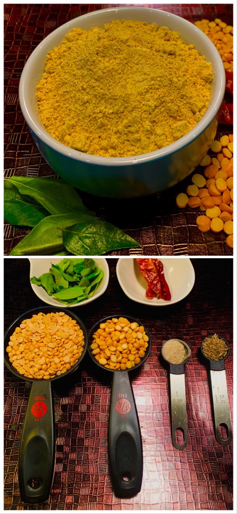 - Addition of few curry leaves to this paruppu podi imparts a fresh aromatic flavour and taste. If you prefer, you can skip adding the curry leaves.