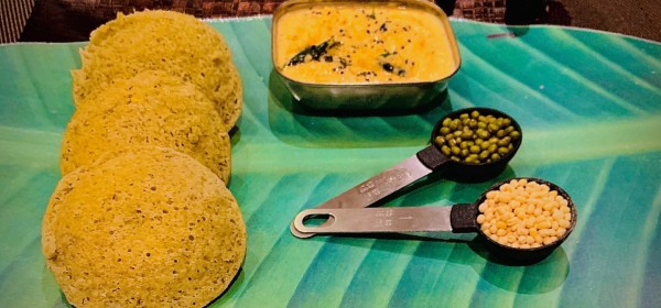 Idli is a common breakfast item in South India and is prepared from a major proportion of rice and urad dhal. Unlike the regular idlis, green moong dhal idlis have no rice and is a healthy alternative to the regular ones. It is prepared by soaking , grinding and fermenting the green moong beans and urad dhal. Green moong dhal is one of the healthiest source of plant protein. They are low in fat and carbohydrates and high in fibre. Apart from its nutrition, the process of fermentation before making the idlis helps in easy digestion. It can be served with chutney and sambar.