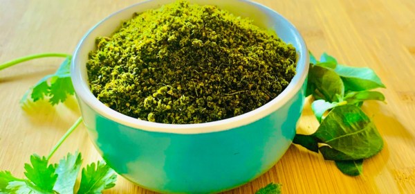 Three Herbs Multipurpose Spice Powder – a healthy and versatile spice blend made from fresh culinary herbs, lentils and spices. As the title suggests, this is a multipurpose herb spice powder with an aromatic flavour and grainy texture. When sprinkled on select dishes, it enhances the flavour & texture, and increases the nutritional profile of the dish.
