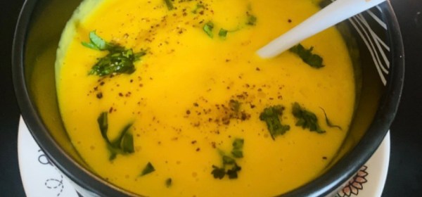 Roasted butternut squash soup – a silky, creamy and luscious soup to warm your palate. This heart warming soup is prepared by blending the oven roasted butternut squash, sautéed onions and garlic along with maple syrup and nutmeg powder. Roasting the butternut squash enhances the flavour of the soup. Serve this warm soup as an appetizer along with some breads.