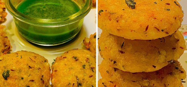 Sabudana vada – a sumptuous deep fried fritter made with sabudana / tapioca pearls that is popular in the state of Maharashtra in India. This Maharashtrian delicacy is prepared by mixing the soaked sabudana, boiled potatoes, roasted peanuts, green chillies and fresh herbs. The mashed dough is then flattened into small portions and are deep fried in oil to golden crisp. This Sabudana vada can be served as an evening snack or as an appetizer along with with green chutney.